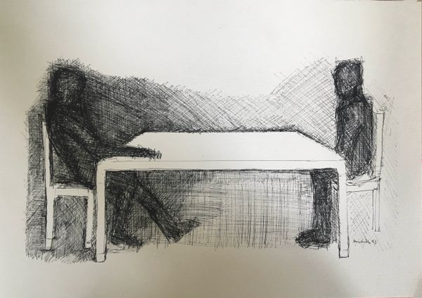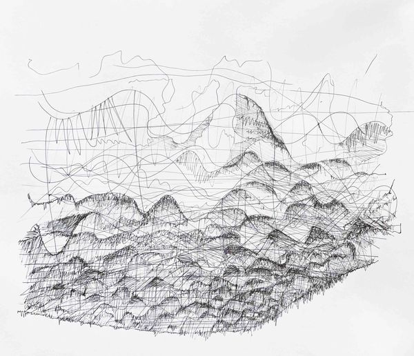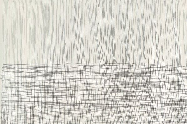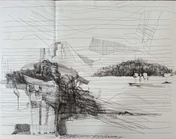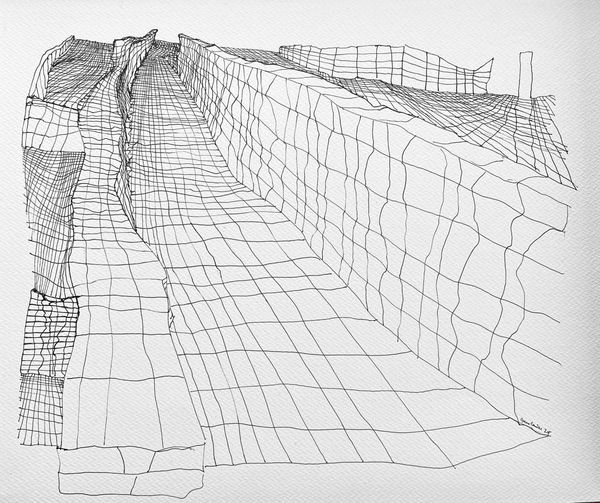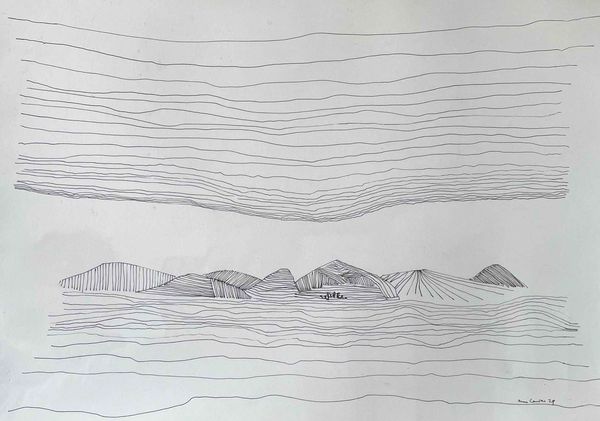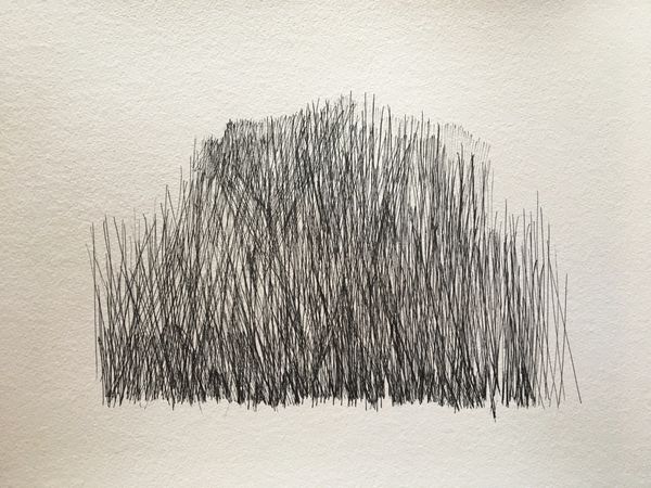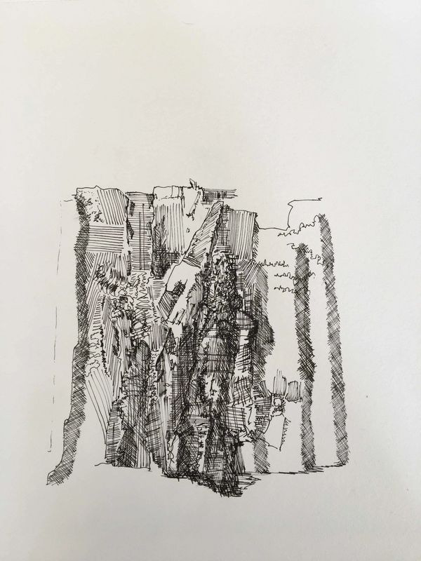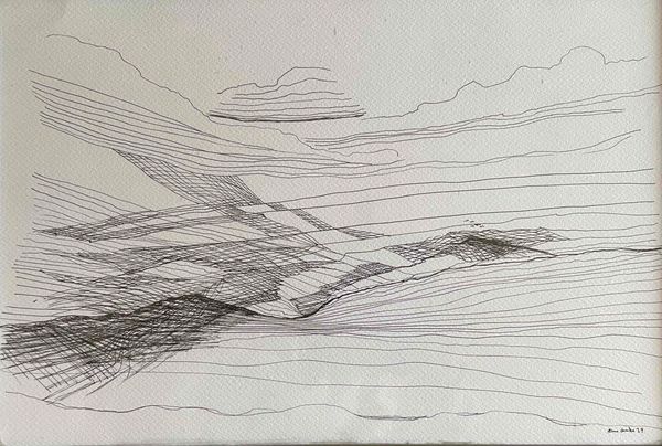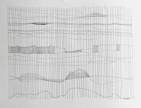De façon concomitante, de jouer sur l'écartement des lignes pour explorer une nouvelle dimension de cette série de paysages imaginaires à l'encre.