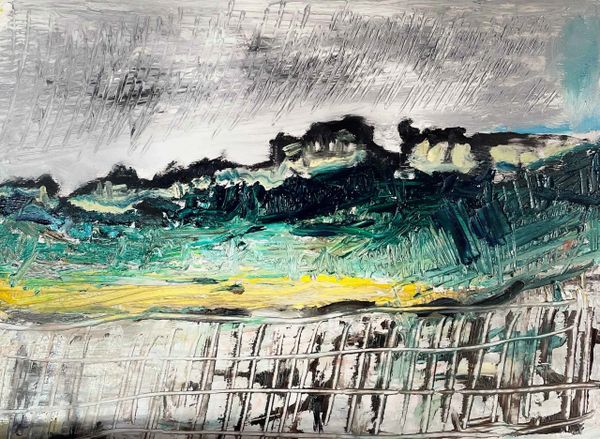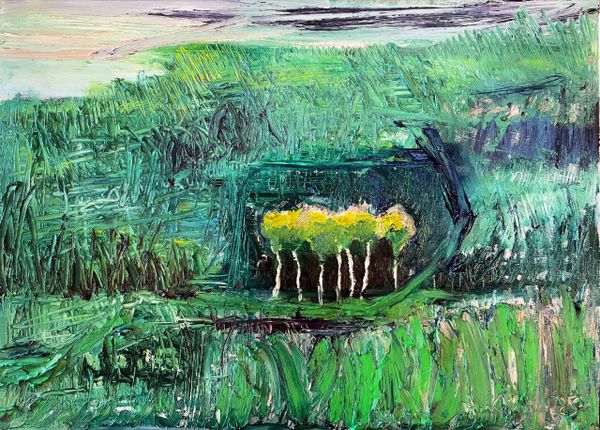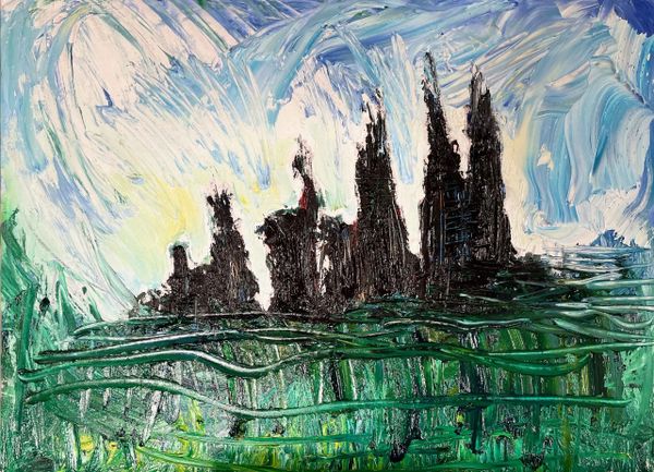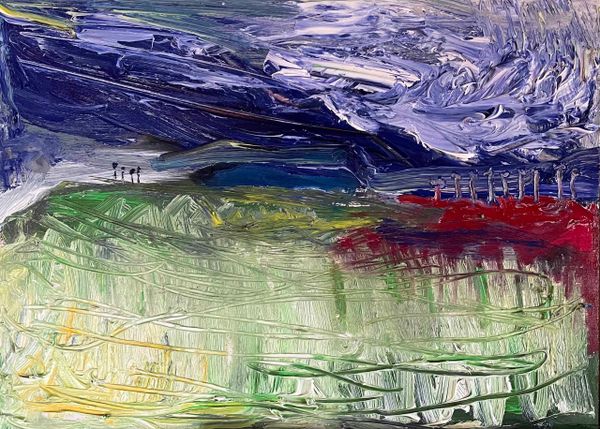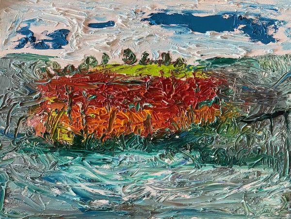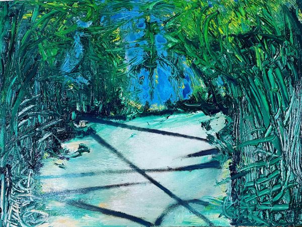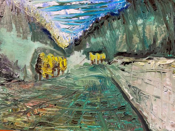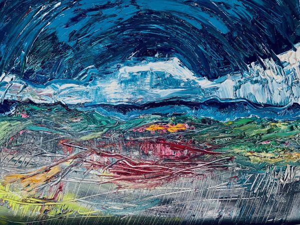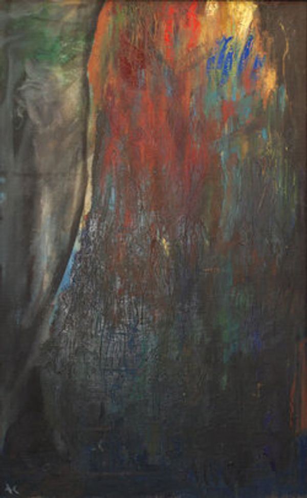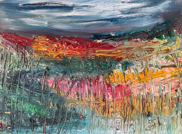 L'artiste a utilisé l'épaisseur de la peinture en faisant nager les couleurs sur la surface dure et en allant jusqu'à parfois graver sur la peinture encore humide.