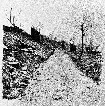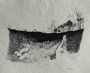Là où il y avait la beauté, là où tout est détruit, je vois encore de la beauté et j'essaye de partager ce regard dans mes dessins des silhouettes des arbres, des roches et des collines des alentours.