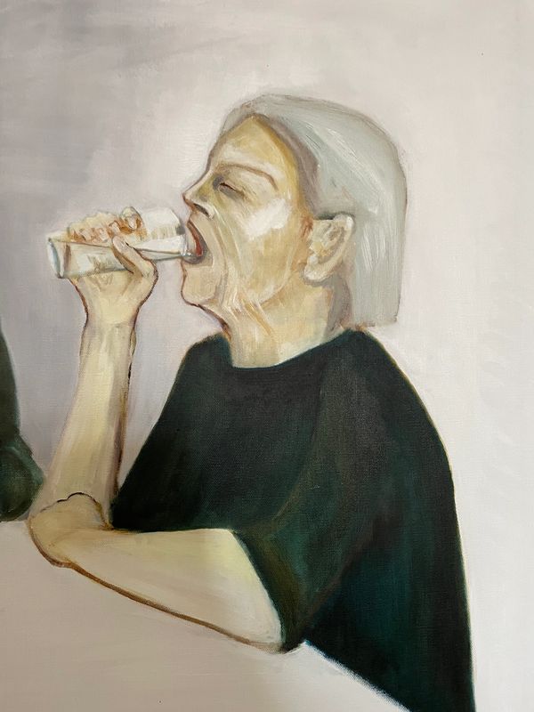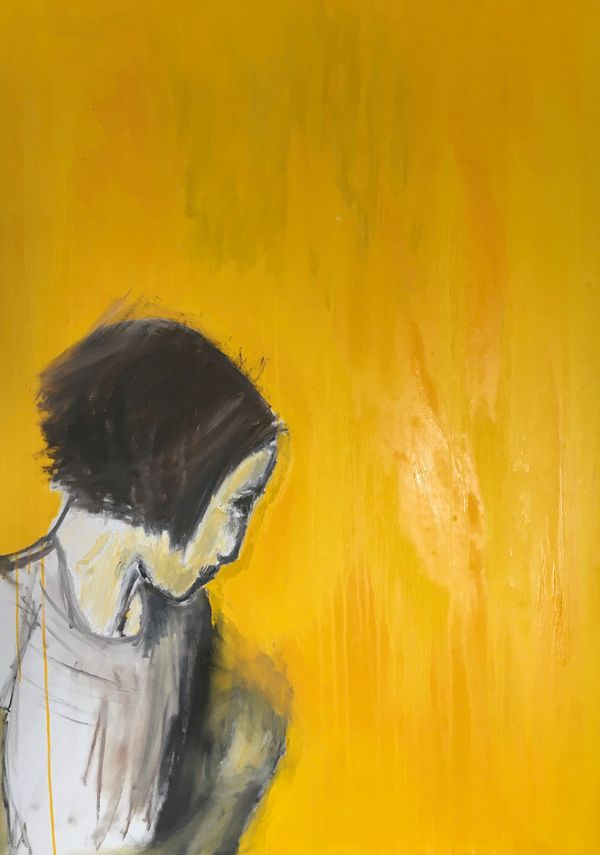 A partir de 2019, j'ai commencé une série des autoportraits pour la plupart, à l'huile sur toile sur un fond jaune.