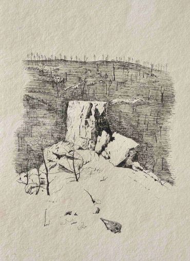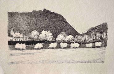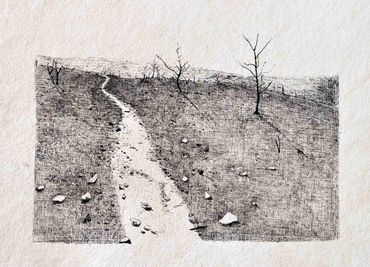 Là où il y avait la beauté, là où tout est détruit, je vois encore de la beauté et j'essaye de partager ce regard dans mes dessins des silhouettes des arbres, des roches et des collines des alentours.