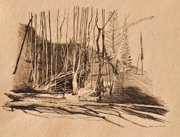 Par ce travail, je fais exister ces arbres une dernière fois, avant qu'ils ne tombent en cendres. C'est comme leur offrir une sépulture par ces dessins, avant que tout ne soit tronçonné.