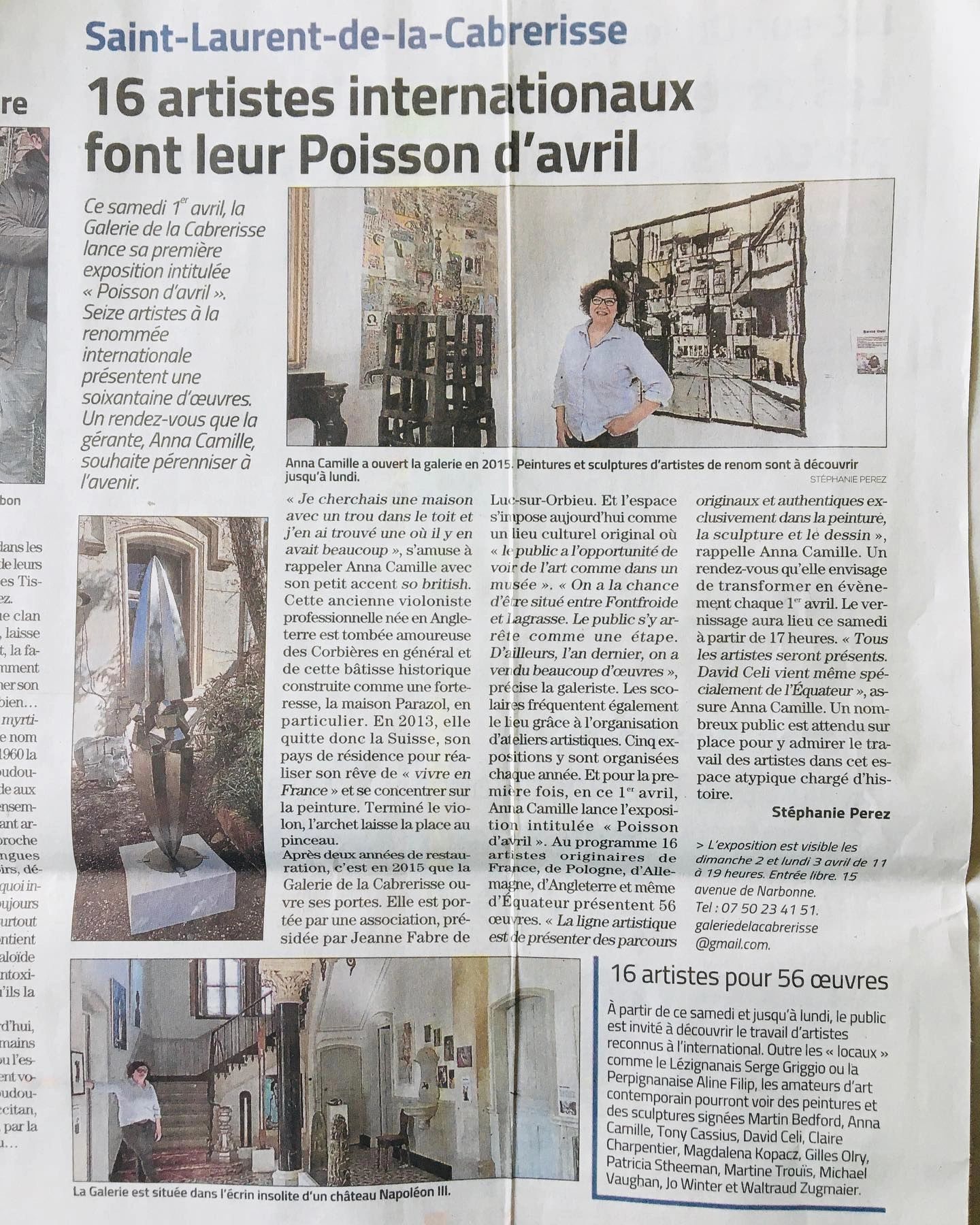 Le 1er avril, découvrez la deuxième édition du salon Poisson d'Avril à la Galerie de la Cabrerisse ; une exposition de groupe de 15 artistes peintres, sculpteurs et graveurs.